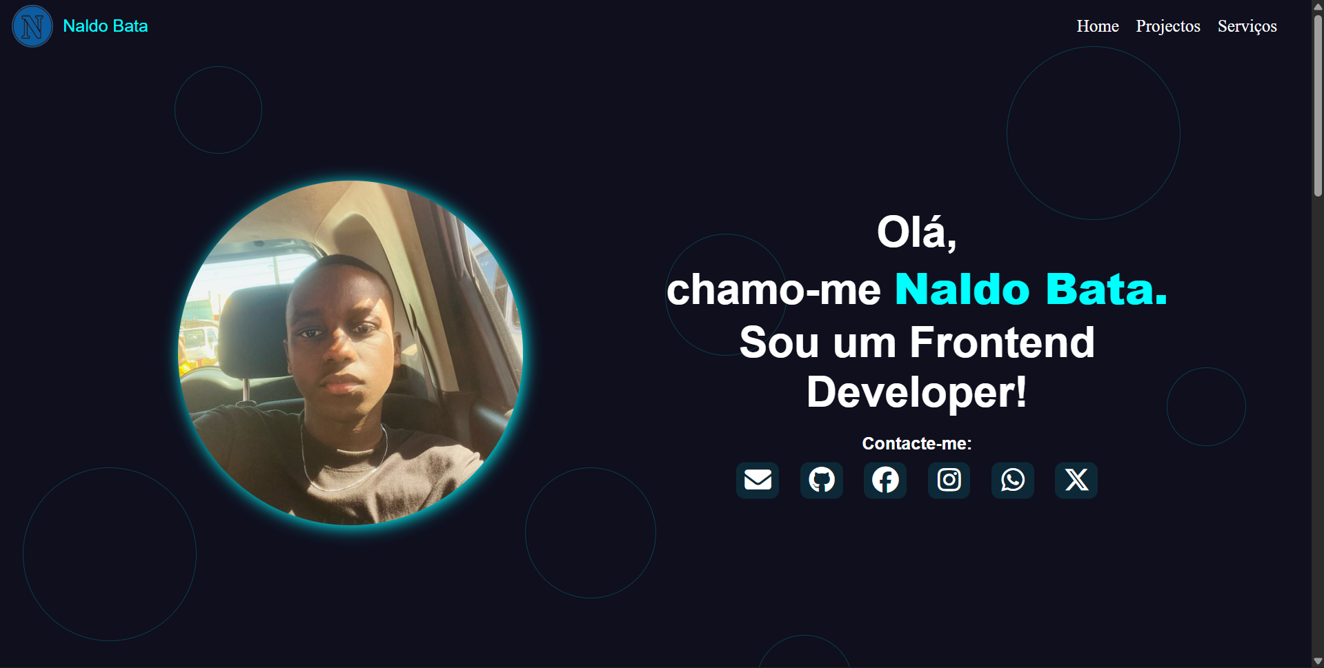 Chamo-me Naldo Roberto Bata, sou um Frontend Develover com dominio de HTML, CSS, JavaScript e Python. Possuo um grande amor pelo desenvolvimento de Sites. Actualmente estou em processo de aprendizagem de mais linguangens voltadas para o Backend, com o objectivo de me tornar um Fullstack Developer. Estou me formando em Informática pela Univeridade Eduardo Mondlane.